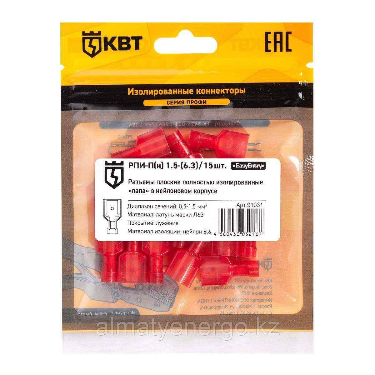 Разъем плоский полностью изолированный «папа» РПИ-П(н) 1.5-(6.3) (15 шт)